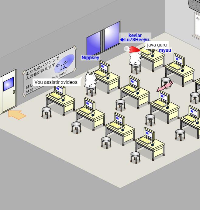 Assistindo saliências na aula de informática.